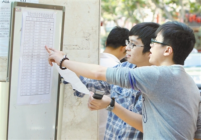 10月20日,考生们在考场外核对自己的考试信息。