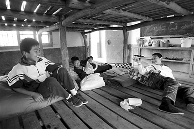 在响水滩小学,孩子们每天就这样睡觉。