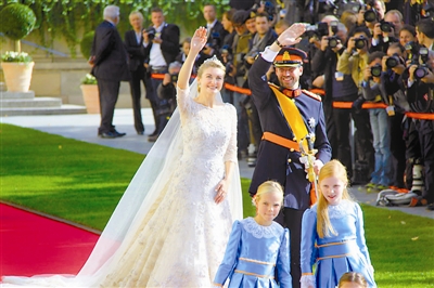 本报讯 10月19日下午,卢森堡大公储纪尧姆与比利时女伯爵斯蒂芬妮·兰诺伊在市政厅举行公证结婚仪式,两人婚礼的宗教部分20日在卢森堡市圣母大教堂举行。比利时、挪威、瑞典、列支敦士登、丹麦、荷兰和英国等欧洲国家的王室成员及其他一些非欧洲国家的皇室成员汇集卢森堡,新人双方亲友、卢森堡及欧盟政要、数十个国家王室成员以及普通民众等数百人参加婚礼仪式,使它获得前所未有的国际关注。
