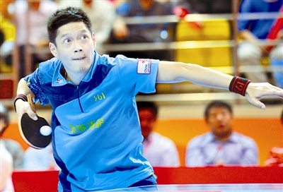 10月21日,2012中国乒乓球俱乐部超级联赛上海赛区比赛在青浦体育馆开赛,上海队以3比1击败四川队。图为四川队邱贻可在比赛中,他以3比0击败了上海队名将王励勤。CFP供图