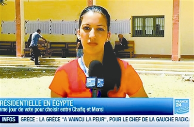 10月19日,法国24电视台女记者索尼娅·德里迪在埃及开罗解放广场采访时,遭遇一伙人“野蛮袭击”,她受到严重惊吓。这是在埃及示威活动中心发生的最新一起针对女性的暴力案件。图为索尼娅·德里迪采访时的画面。吉平 供图