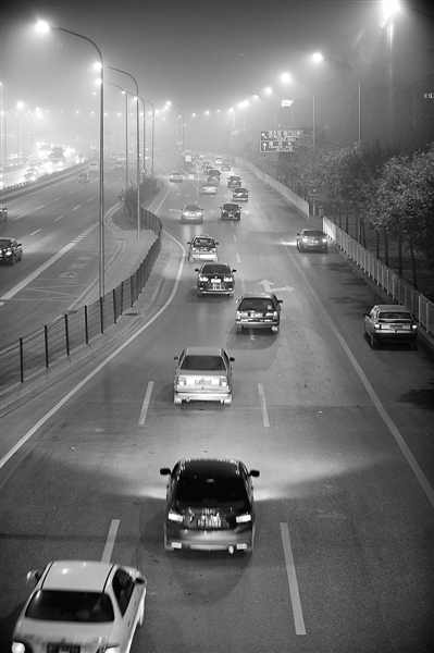 当日,北京出现大雾天气,能见度降低,对交通出行造成一定影响。