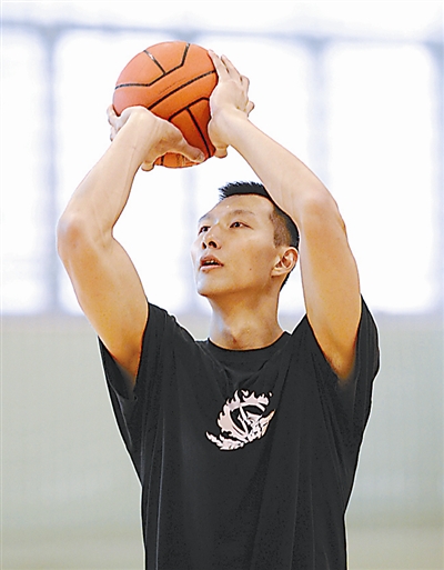 10月24日,易建联在国家体育总局秦皇岛训练基地进行强度投篮测试。 新华社记者 杨世尧 摄
