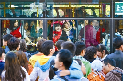 10月28日,北京香山红叶节客流暴涨,公交车上人挤人。13.8万游客香山赏红,刷新了自1989年举办香山红叶节以来单日接待游客量新高。