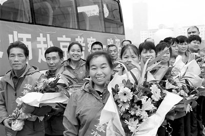 10月27日,江西省宜春市举行仪式,欢送16位“城市美容师”乘坐飞机赴首都北京旅游。为引起全社会对环卫事业的关注和对环卫工人的关爱,10月26日晚,宜春市举行庆祝江西省第十七个环卫工人节暨首届“城市美容师”颁奖典礼,授予16名一线环卫工人“城市美容师”称号。邹海斌 摄
