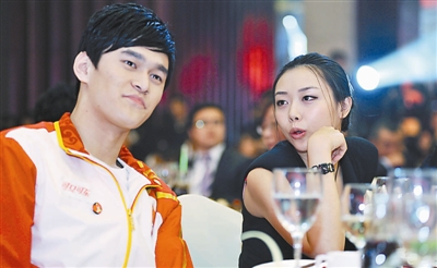 10月29日,上海,在某慈善晚宴上,著名演员濮存昕的女儿(右)以15万元拍得孙杨的一次训练课。