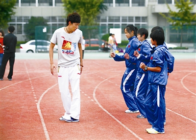 9月23日下午,陈定在西安体育学院训练场给国家竞走少年队小队员做示范,指导小队员训练。