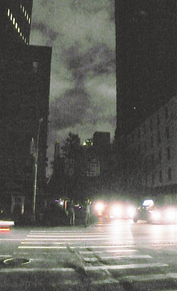 10月30日,在美国纽约曼哈顿,飓风导致下城电力完全中断,汽车在黑暗中行驶。