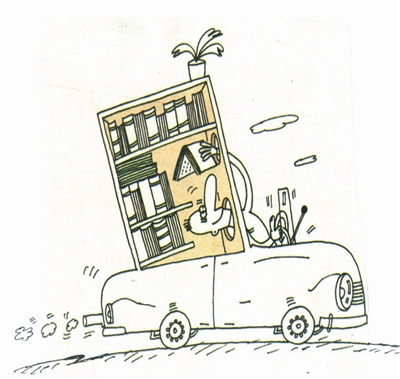 这幅画表达了一个轻松的话题——愉快读书。作者的立意很好,但表现手法离了“谱”。既忽视了交通安全,又有悖生活常理。
