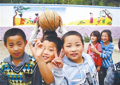 马丈子小学的孩子们正在玩耍 , 在志愿者到来之前 , 他们从未摸过篮球 。