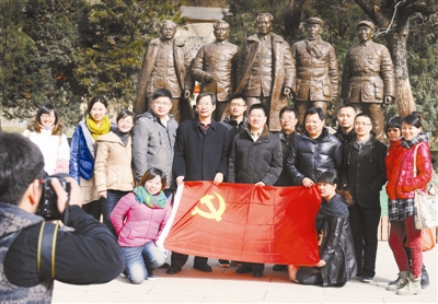 11月3日,来自浙江传媒学院的参观者在枣园革命旧址拍照留念。
