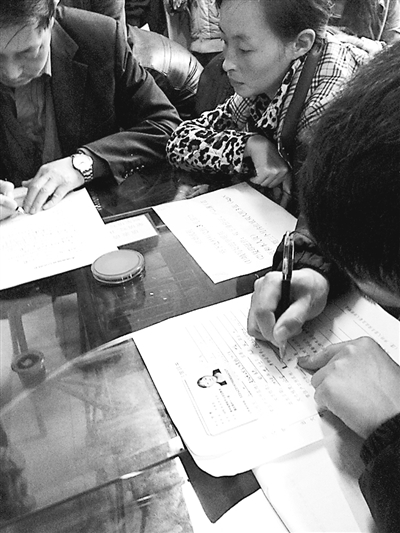除了原来登记离婚的一个窗口,其他登记结婚窗口也在办理离婚登记。大厅旁代写离婚协议的地方人潮涌动,一些人拿到“标准”离婚协议后,就签字按手印。离婚理由中,“因夫妻俩没有共同语言,感情破裂,经常吵架”成标准格式。一位准备办理结婚证的市民感慨,这是他见过的最“和谐”的离婚场面。(冬俊 /东方IC)