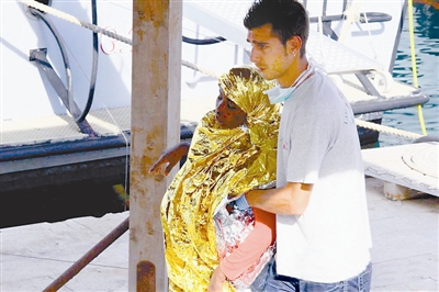 11月4日,一艘满载非洲移民的船只在行至距离北非海岸65公里处时倾翻,10人遇难,意大利海岸警卫成功营救了70名乘客,获救者均被转移至意大利海军舰艇进行治疗,大多数人体温较低,国籍尚未确定。图为在意大利兰佩杜萨岛,一名获救妇女裹着救生毯。吉平 供图