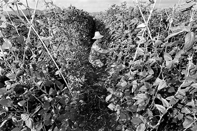 11月7日,菜农杨杰在豆角地里进行田间管理。近日,三亚冬季瓜菜种植迎来最佳时期。在三亚市崖城镇、天涯镇等冬季瓜菜产地田间,到处都是菜农们忙碌的身影。截至目前,三亚市已种植瓜菜6.5万亩,备耕备地3万多亩。 新华社记者 侯建森 摄