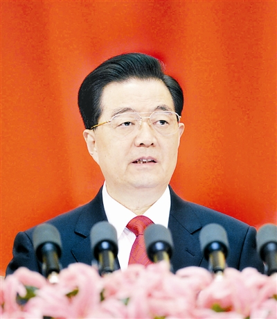胡锦涛代表十七届中央委员会向大会作报告。新华社记者 黄敬文 摄