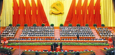 中国共产党第十八次全国代表大会闭幕式主席台。