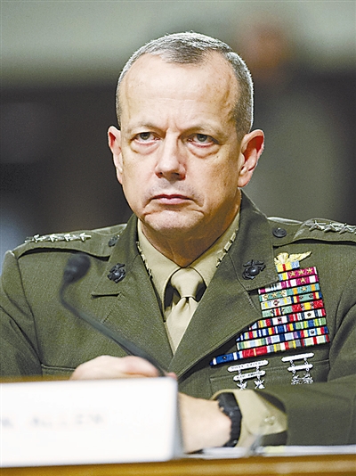 现年58岁的约翰·艾伦是美国海军陆战队的四星上将,去年7月接替彼得雷乌斯出任驻阿富汗美军司令,在他任中央司令部司令时与凯利结识。面对这一“飞来横祸”,艾伦极力否认,坚称自己未做任何出格之事。但国防部对艾伦与凯利之间的“不当联络”不敢怠慢,13日,五角大楼新闻发言人乔治·利特尔称正在对艾伦展开调查。如果发现是婚外情,按照美军军法,艾伦或将面临“通奸罪”指控。