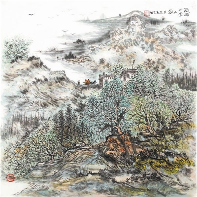 西域山里人家(国画)李 明