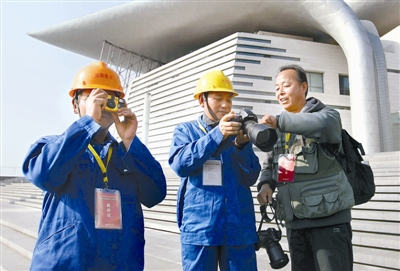 11月18日,来自江苏无锡各建筑施工单位的10名建筑工人代表手持相机,和市建设文化艺术中心邀请的摄影师一起,聚焦无锡大剧院与蠡湖美景。据了解,作为当地首届建筑工人摄影节的活动之一,主办方通过向百名建筑工人免费赠送相机,举办建筑工人拍城市建设新貌等主题活动,让一线建设者通过镜头感受他们所建设城市的魅力。宦玮 摄