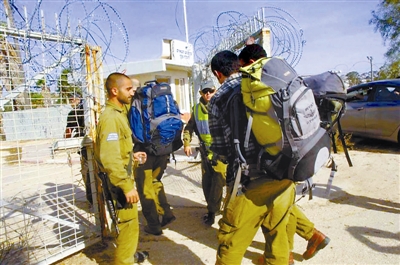 以色列近日征召了7.5万预备役军人,并且在以色列与加沙边境集结了大量军队,图为17日,预备役士兵在军事基地报到。吉平 供图
