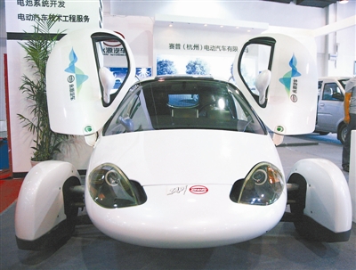 8月10日,在2012中国(杭州)国际新能源汽车产业展览会上展出的造型独特的纯电动概念车。李晨韵 摄