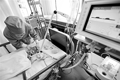 11月21日,儿子凡凡(化名)在重症加护病房接受术后观察。