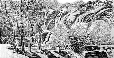 峨眉山是著名的佛教旅游胜地,主峰三O九九米,山上有数十处佛教寺庙群落,有“古老植物王国”之称。游客在特色美食村可吃特色美食,在万年寺和大佛禅院吃素斋。每年十月至次年四月海拔两千米以上地区被冰雪覆盖,现在山上为游客准备大量棉大衣供游人租用,图为笔者现场以干笔画法绘制的“秀甲瀑布”景区一角。文 / 速写 路林