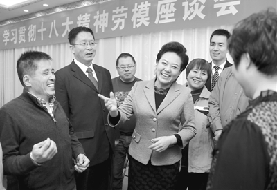 11月23日,北京市东城区总工会举办学习贯彻十八大精神劳模座谈会,来自该区的15名全国、北京市劳动模范参加了座谈会。大家纷纷表示,要以十八大精神武装头脑、指导工作,充分发挥劳模的示范带动作用,为全面建成小康社会做出新贡献。图为十八大代表、全国劳模、东城区史家胡同小学校长王欢(中)向劳模介绍自己参加十八大盛会的感受。
