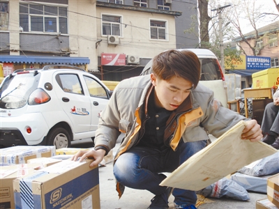 “下午1点前,必须派送完90%,并且扫描入网,否则公司会罚款的。”胡雪泉告诉记者,老板分给他的“地盘”是东城区安德里北街以南、安德路以北这片区域,任务不算轻。“下半年每天要比上半年多派送40多件,收件也只多不少。”