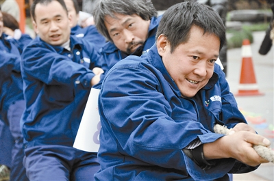 11月26日,浙江省江山市召开全市第二届工人运动会。为了让职工们体会到体育竞赛的乐趣,赛事组委会除了设置拔河、登山等传统项目之外,还特意增加了大力拉车赛、翻轮胎、推双轮车接力等项目。