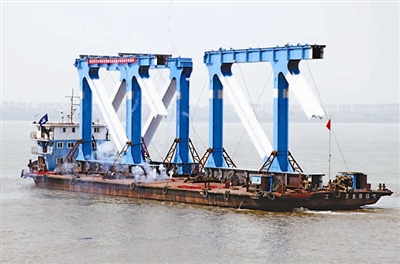 日前,装载着三片超大型整体桁片梁的船舶离开长江九江段重件码头,驶向合福铁路铜陵长江公铁大桥建设水域。