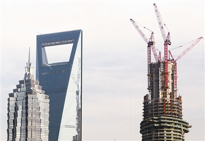 上海中心大厦即将突破400米高度