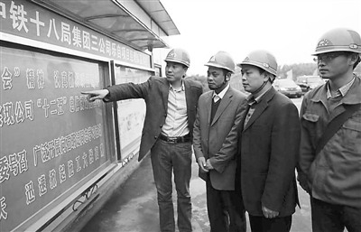 11月23日,中国铁建十八局集团举行学习宣传贯彻党的十八大精神视频会议,邀请天津市委党校教授对十八大报告精神做了深刻的讲解。集团学习贯彻落实十八大精神热潮不断掀起,各单位纷纷通过广播、电视、网络等媒体,组织广大干部员工解读领会学习十八大精神。 图为该集团三公司云桂铁路项目部班子成员在宣传栏前认真学习。伍振 刘凤翥 摄