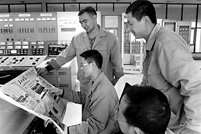 11月22日, 重庆能源集团建新发电公司集控车间职工,利用工间休息时间,学习宣讲党的十八大精神。报告中提出“人民生活水平全面提高”的目标,让大伙信心倍增,纷纷表示要为安全生产多作贡献,更加努力的完成好今年的发电任务。于晓瑜 摄