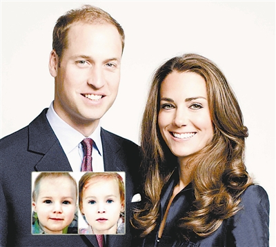 大图为威廉和凯特,小图为电脑合成的凯特未来宝宝的照片,如为男孩则像威廉,女孩则像凯特,当然,也有可能是双胞胎。阿康 供图