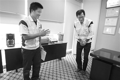 向老板 “ 汇报 ” 完工作 , 还不习惯鞠躬的陈新华摆手向老板告别 。