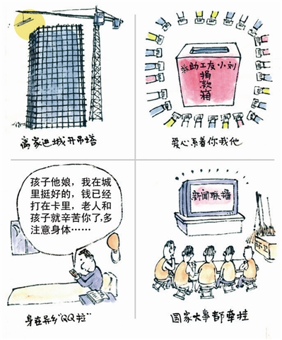 路的这头,是熟悉的乡邻,低矮的农舍,是一年到头翻不出一家吃喝的几分薄地,还有埋在心底那对好日子的向往;路的那头,是陌生的光鲜男女,是高楼林立,尽管打工总是一身灰土,尽管只能蜗居工棚、地下出租屋,但好歹能挣来孩子的学费。自然,前提是遇到良心不太坏的老板,能按时发下工钱。