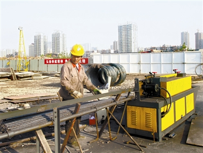 “现在工地上都是机器操作,不再是简单地‘卖苦力’,而是要靠技术。”周非告诉记者,成捆的钢筋都是用吊车调运,单件的制作依靠的是先进的设备,基本都是一次成形,因此劳动强度较以前小了很多。