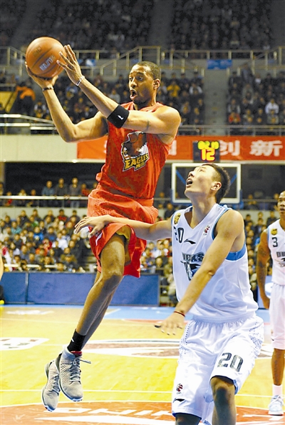 9日晚,青岛客场102比116负于北京。图为麦蒂突破上篮。