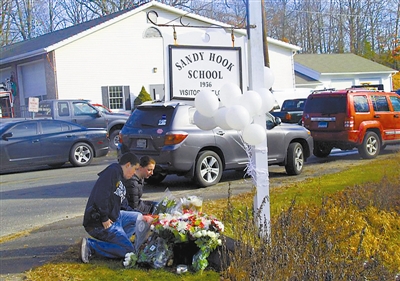 当地时间12月15日,民众获准到此前被警方重重封锁的美国康涅狄格校园枪击案案发地——桑迪·胡克小学校门口进行哀悼,案发地的哀悼活动由此展开。14日该小学发生的枪击惨案震惊了全世界。 李洋 摄