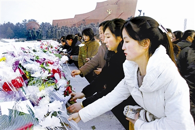 12月16日,朝鲜人民军官兵、各阶层人民和青少年学生前往万寿台,为朝鲜已故领导人金日成和金正日铜像献花。12月17日是朝鲜已故最高领导人金正日逝世一周年纪念日。肖劼 供图
