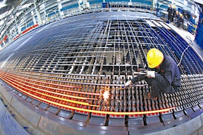 12月19日,江苏省赣榆县一家钢铁企业工人在生产外销钢材。近期钢材价格表现得格外强劲,从11月底至今累计涨幅达到10%左右,现货和期货价格都逼近4000元/吨的整数关口。 司伟 摄
