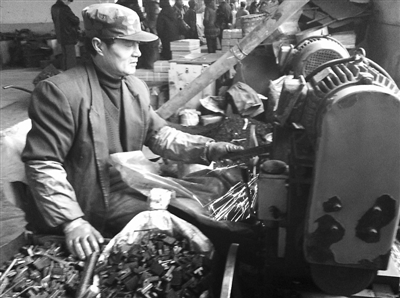 以年生产各种规格手用钢锯条8千万支、各种型号台虎钳10万台骄人业绩而称雄国内市场的烟台金光工具有限公司,始终把科技创新放在首位,每年至少推出5种以上新品,其产品不但覆盖全国市场,还畅销美国、俄罗斯等30多个国家与地区。今年10月,该企业获得淬火工艺的6项国家专利,使锯条淬火在实现无烟、节能、环保的同时,还可提高生产率30%以上。图为该企业职工正在磨光下线产品。