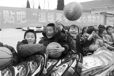 ④12月11日,河南省内黄县百度贴吧爱心志愿者来到中召乡第三小学,举行“温暖寒冬”爱心捐助活动,为贫困留守儿童送去了爱心棉衣、图书、文具等生活学习用品,让贫困孩子们感受到寒冬里的一股暖流。刘肖坤/东方IC