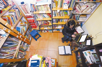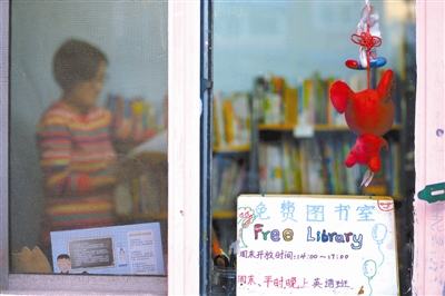 这间“免费图书室”位于北京东北五环外的城乡结合部草场地村的一间民房里。