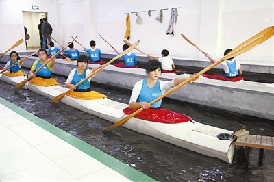 上海市徐汇区青少年体育运动学校学生在进行赛艇训练。本报记者 郎成 摄