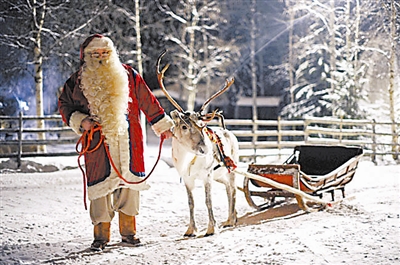 “圣诞老人村”位于芬兰的拉普兰地区罗瓦涅米以北8公里处的北极圈上。每年源源不断的游客从世界各地涌向这里,以一睹圣诞老人的风采。历史上传说,芬兰是最早迎接圣诞老人安居的故乡。1927年,芬兰和前苏联确定以拉普兰省的“耳朵山”作为两国通往北冰洋的国界线。芬兰的儿童故事大王玛尔库斯从中获得灵感。他在电台讲故事时说,圣诞老人和两万头驯鹿就一起住在这座“耳朵山”上。正是因为有“耳朵”,圣诞老人才能在北极听到世界上所有孩子的心声。他这种颇有感染力的浪漫推理获得了世人认可,从此,故事中的“耳朵山”就成了圣诞老人的故乡。