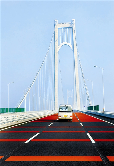 当日,南京长江第四大桥正式通车。通车没有仪式、没有剪彩活动、没有领导致辞,取而代之的是对大桥建设者的慰问和表彰。南京长江四桥项目全长28.996公里,主跨径1418米,是目前国内跨径最大的三跨吊悬索桥,在同类桥型中居世界第三。 新华社记者 孙参 摄