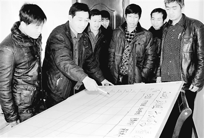 图为班长郝彦明正在设计班组体系建设看版。王志强 摄