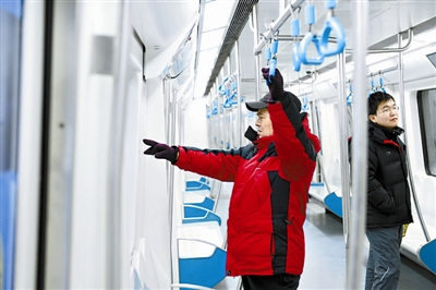 12月30日,北京市民搭乘首班从巴沟开往西局的始发地铁列车。当日,北京地铁6号线一期、8号线南段、9号线北段和10号线二期等4条地铁新线正式投入运营。至此,该市轨道交通总里程达到442公里,城市中心区轨道网基本形成。本报记者 王叔坤 摄